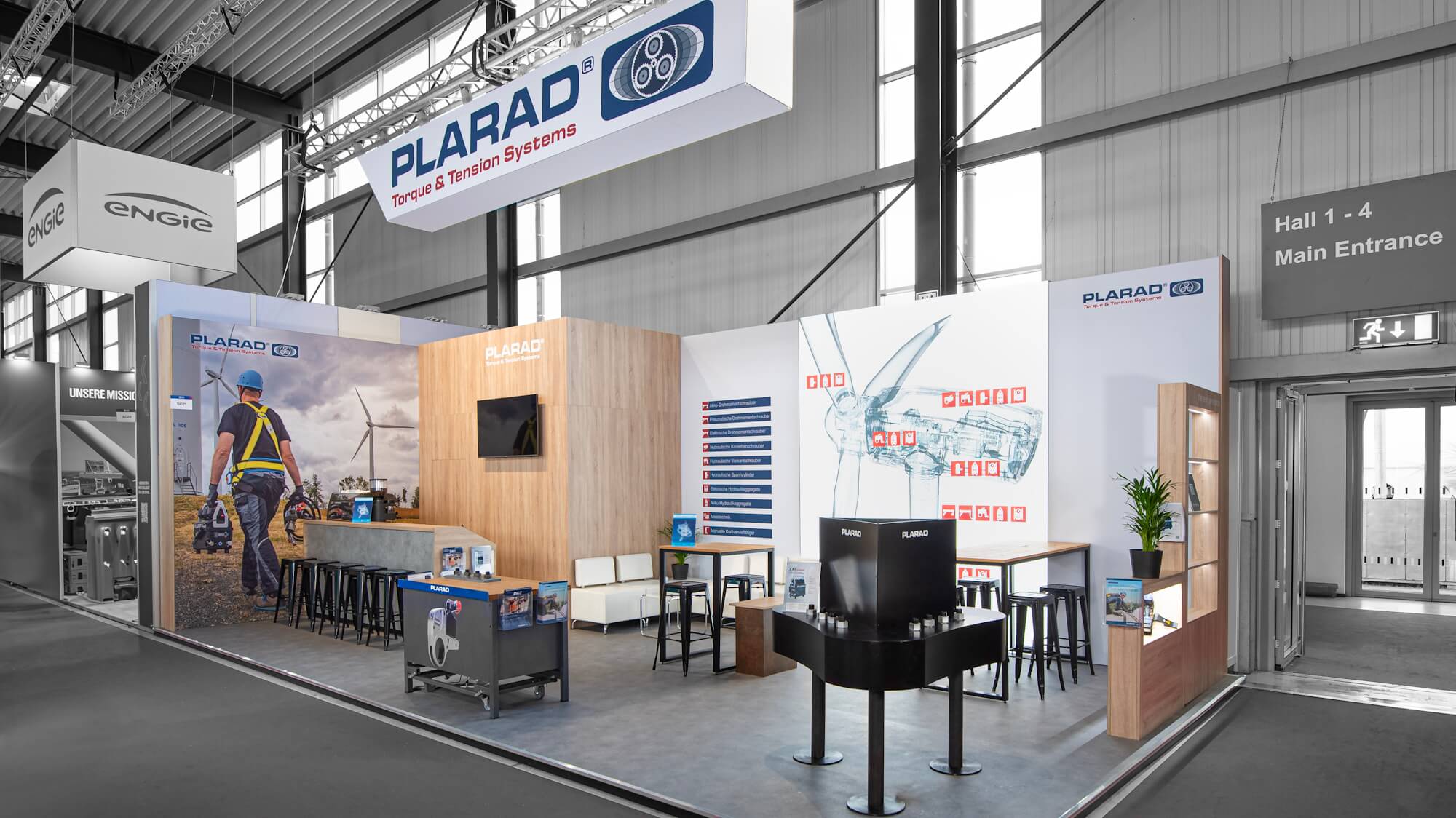 Der Aussteller DREH-NORM, den wir bereits auf der WindEnergy und der SMM im Jahr 2014 unterstützt haben, kehrte nach 9 Jahren auf die Messeplattform zurück. Mit einem ähnlichen Konzept wie damals, das den Fokus auf Schrauben und Passgenauigkeit legte, zog DREH-NORM die Aufmerksamkeit auf sich. Die Kombination aus Weiß und leuchtendem Rot (passend zur Corporate Identity) sorgte für eine beeindruckende Fernwirkung.