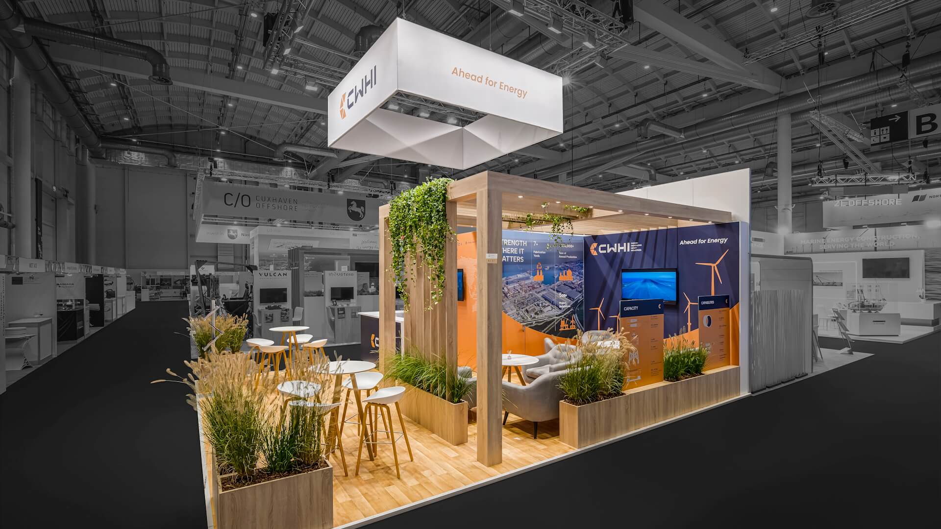 Acht Kunden haben wir erfolgreich mit unseren individuellen und maßgeschneiderten Messeauftritten unterstützt. Die Messe, die als einer der wichtigsten Treffpunkte der Windenergiebranche gilt, bot eine hervorragende Plattform für Networking und den Austausch von Innovationen.