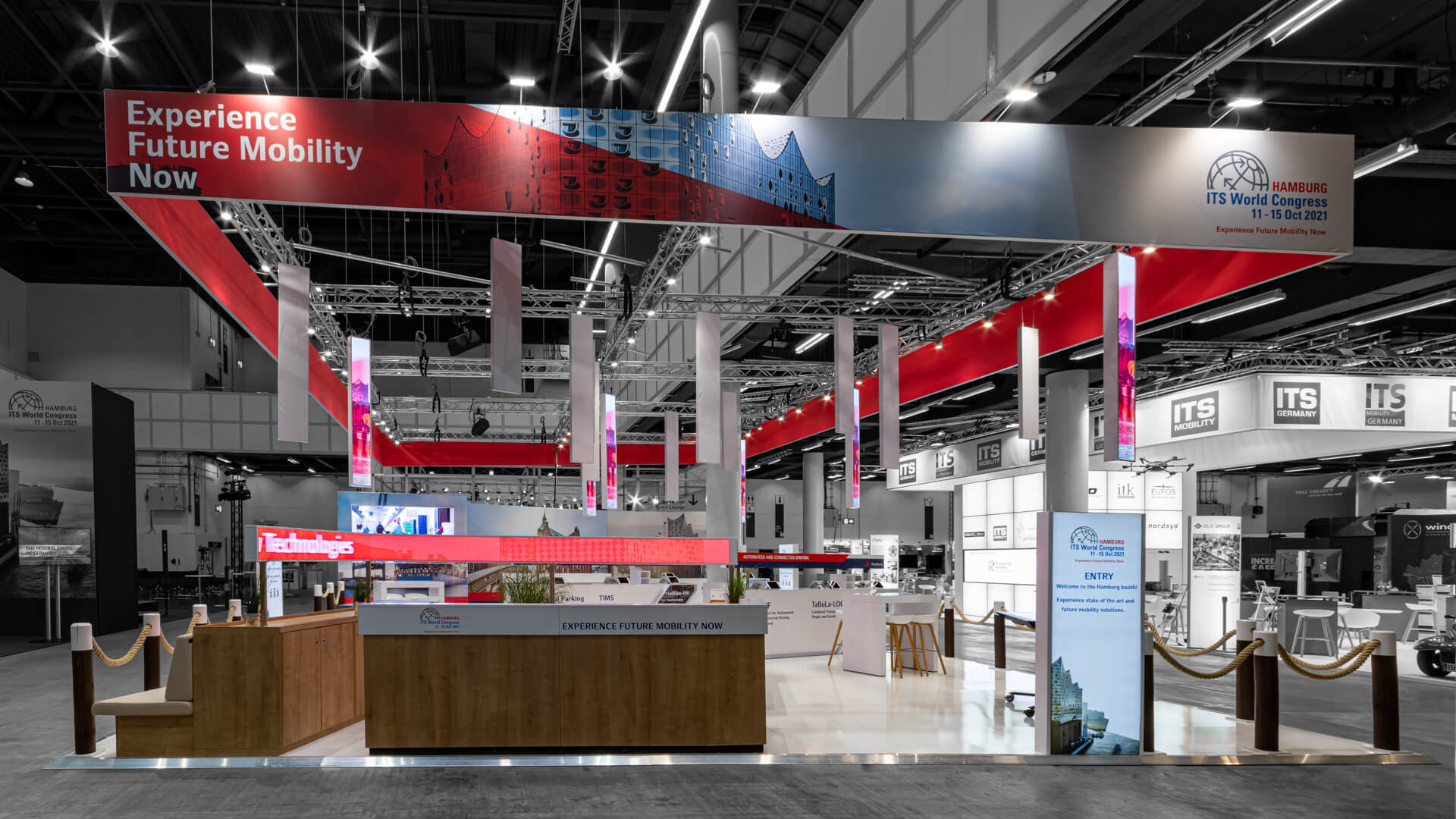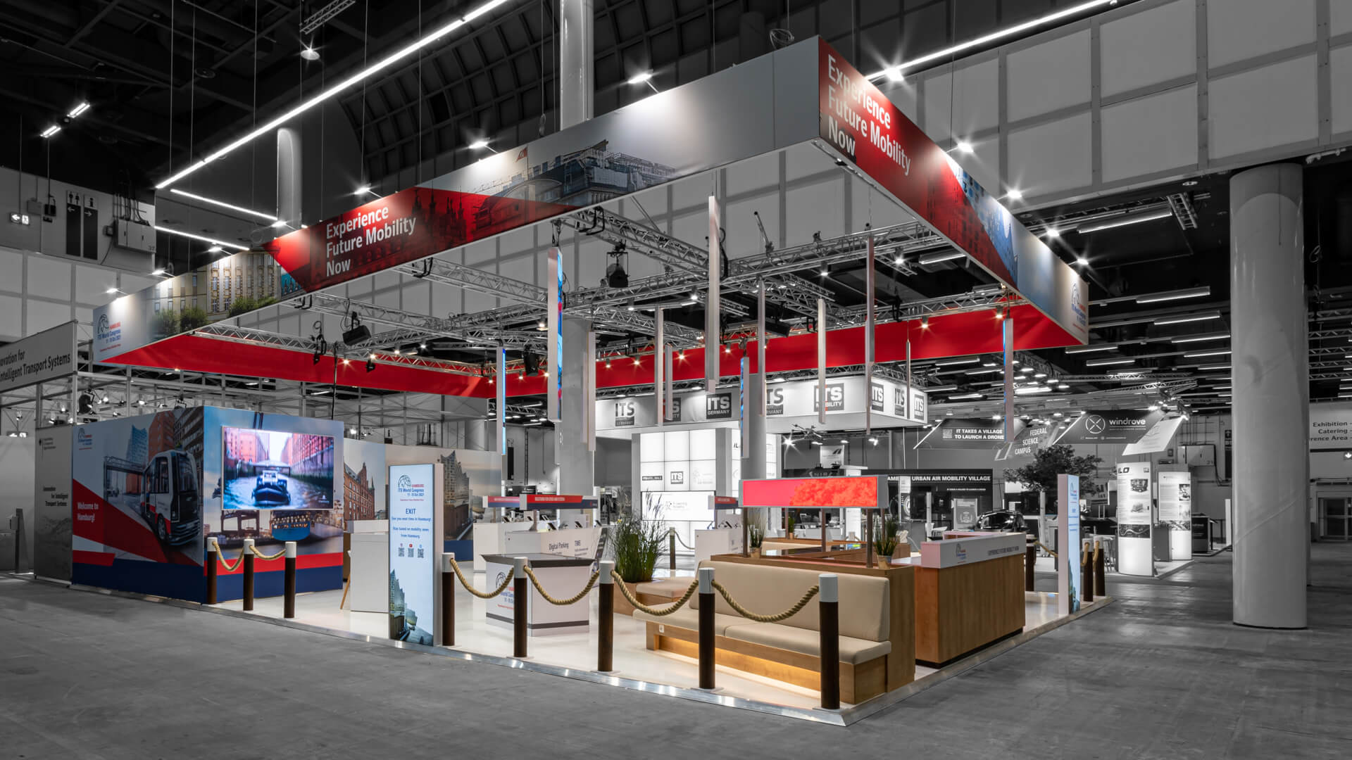 Unsere Aufgabe für die ITS GmbH aus Hamburg war die Konzeption und Realisation des Messestandes auf dem ITS World Congress 2021 auf einer Fläche von 165 m². Wir erschufen einen „Harbour of Ideas“ mit vielen maritimen Elementen – angelehnt an die gastgebende Hafenmetropole Hamburg – eine ideale Get-together-Plattform für die Kongress-Gäste. Designed wurde der Stand von unserem langjährigen Partner Tim Willi Hansen. Projektleiterin war unsere Kollegin Jana Zurheiden.